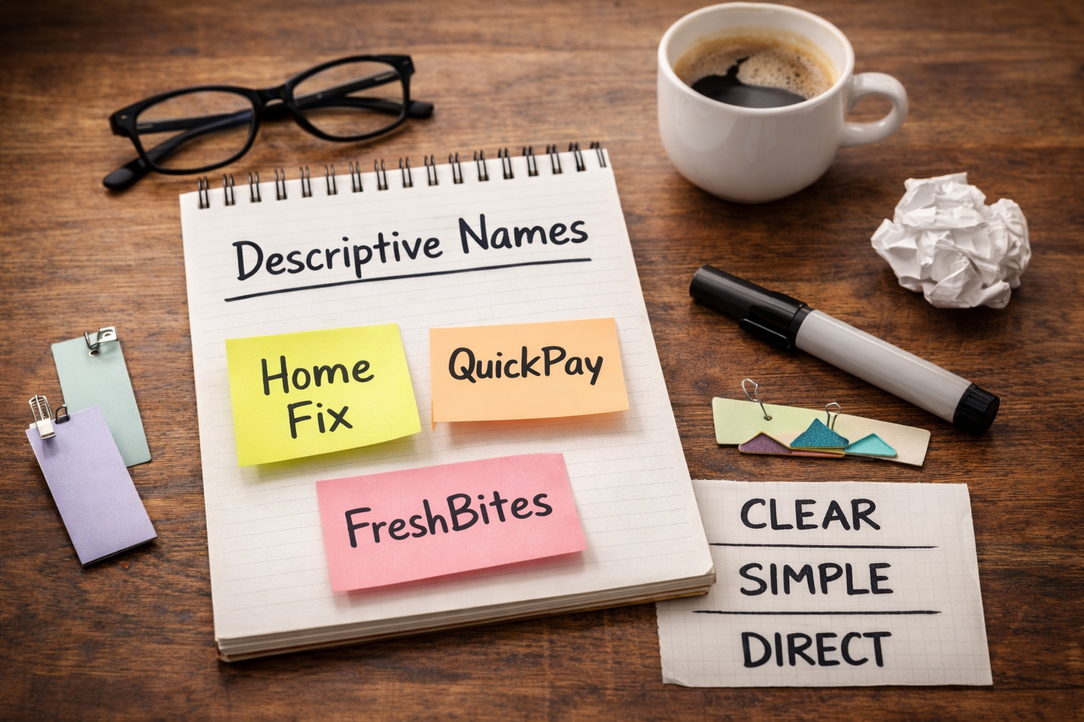 Descriptive names do exactly what they promise. They explain the business plainly and immediately. Think of brands like The Home Depot, PayPal, or General Motors. There is no ambiguity. The value proposition is obvious from the first interaction.